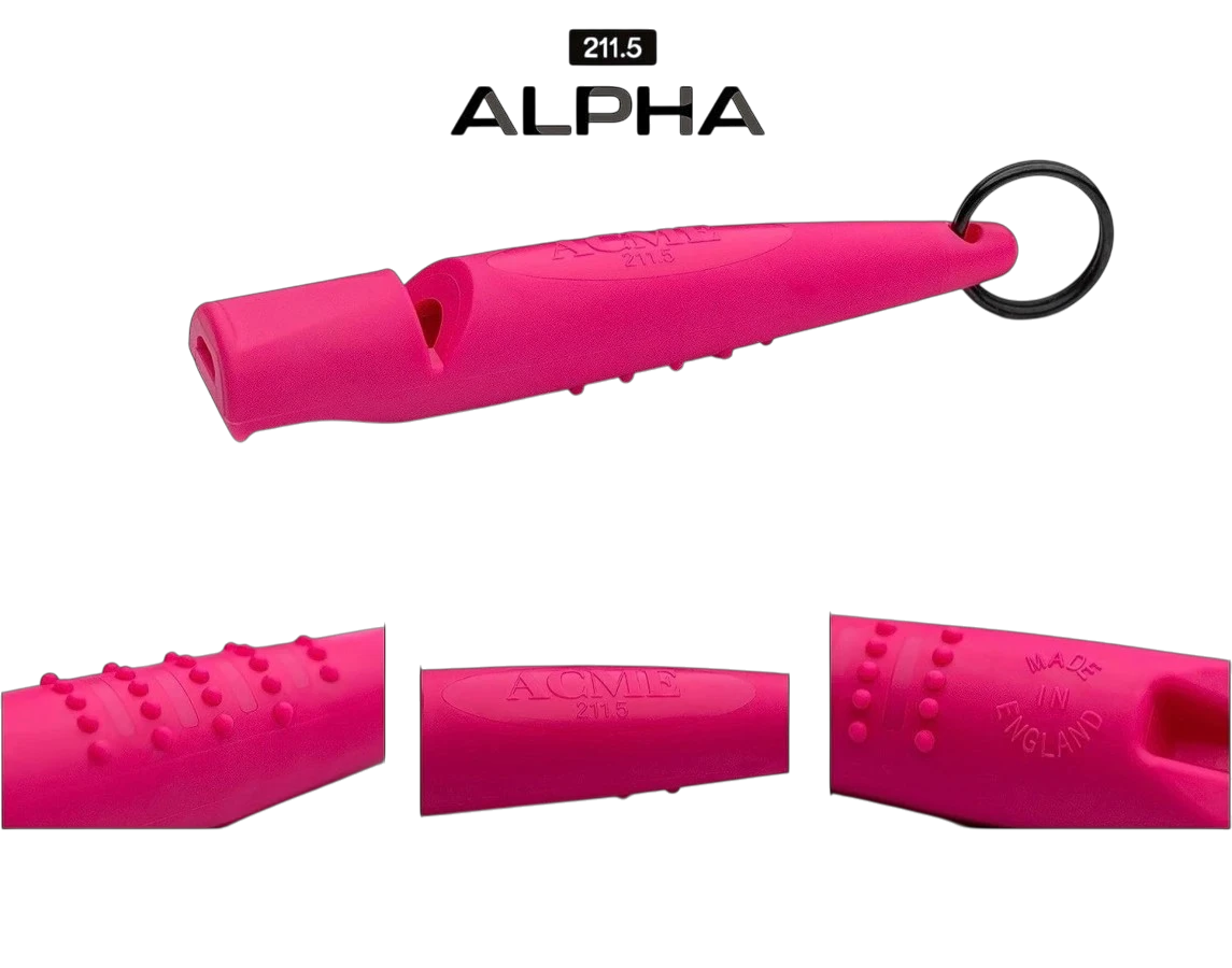 Acme ALPHA swojej konstrukcji zawierają opatentowane komory dźwiękowe, które zapewniają bardziej efektywne wykorzystanie powietrza. Oznacza to jaśniejszy dźwięk ułatwiający przewodnikowi wydawanie komend, a psu ich rozumienie, zarówno przy pracy w bliskiej, jak i dużej odległości.
