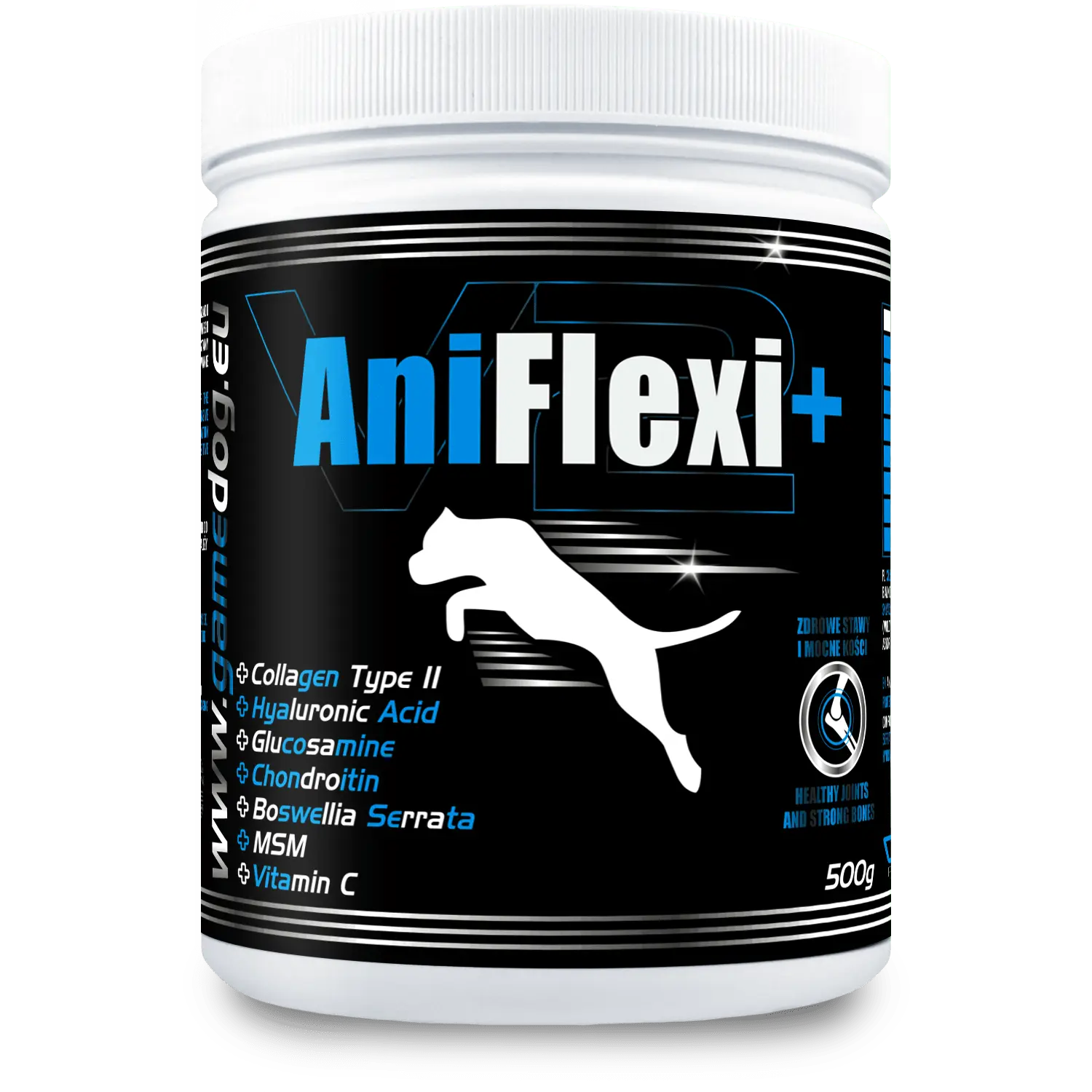 AniFlexi+ jest innowacyjnym, wieloskładnikowym suplementem diety dla psów, wspomagającym prawidłową pracę układu ruchu. Składniki aktywne produktu zmniejszają stany zapalne i dolegliwości bólowe w obrębie chrząstek, a także poprawiają elastyczność i ruchomość stawów. Regularne stosowanie preparatu wpływa pozytywnie na pracę układu ruchu i przeciwdziała postępowaniu zmian degeneracyjnych w stawach.