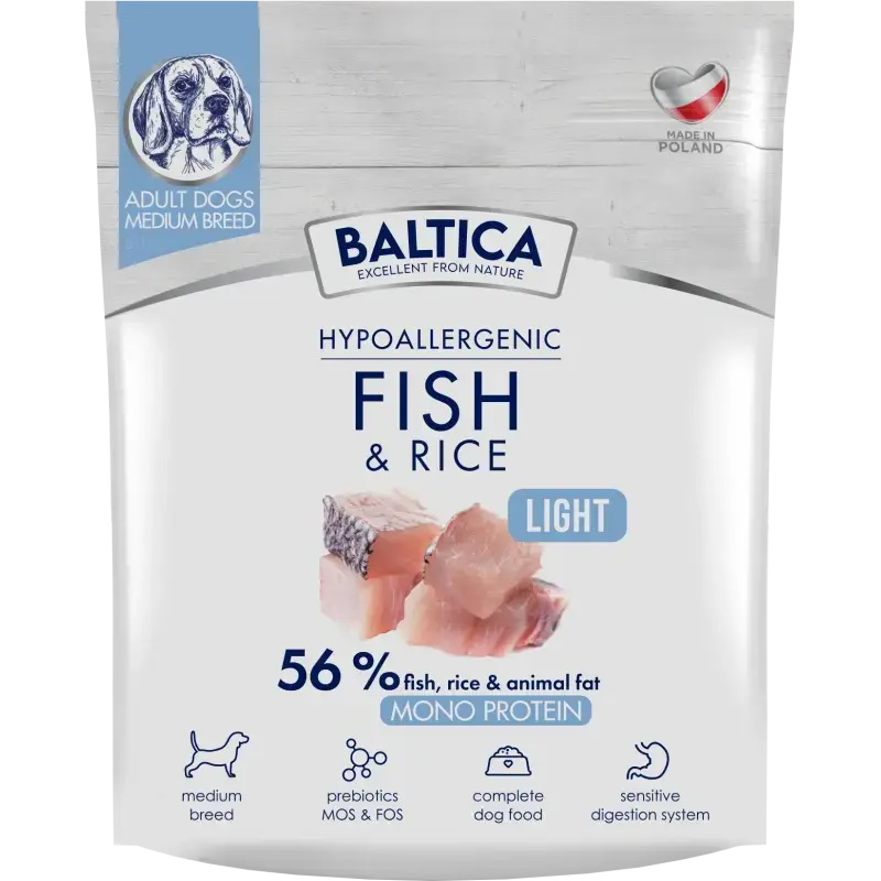 BALTICA Hypoallergenic Dzikie Ryby z ryżem LIGHT 1 kg rasy średnie