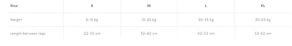 Aby dobrać odpowiedni rozmiar, zmierz długość tułowia psa – odcinek między przednimi a tylnymi łapami (po spodzie ciała). Następnie porównaj wynik z zakresem w tabeli.