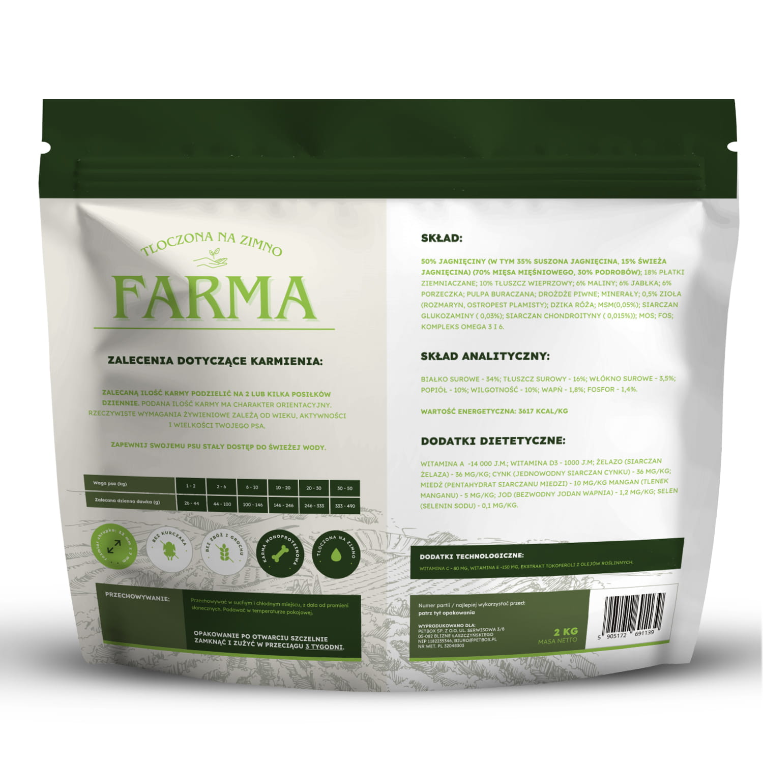 Hipoalergiczna Karma tłoczona na zimno FARMA Jagnięcina 5 x 2 kg dla psów dorosłych