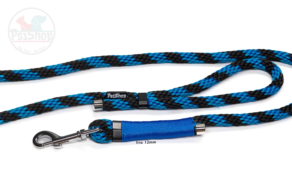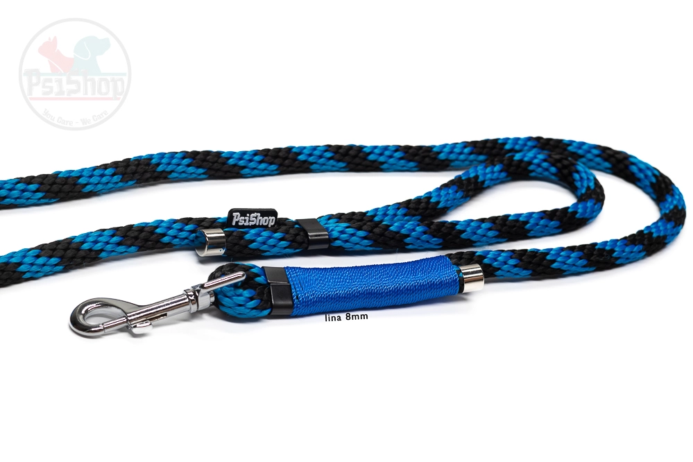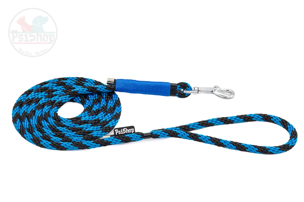 Linowa Smycz Spacerowa PsiShop niebiesko-czarna