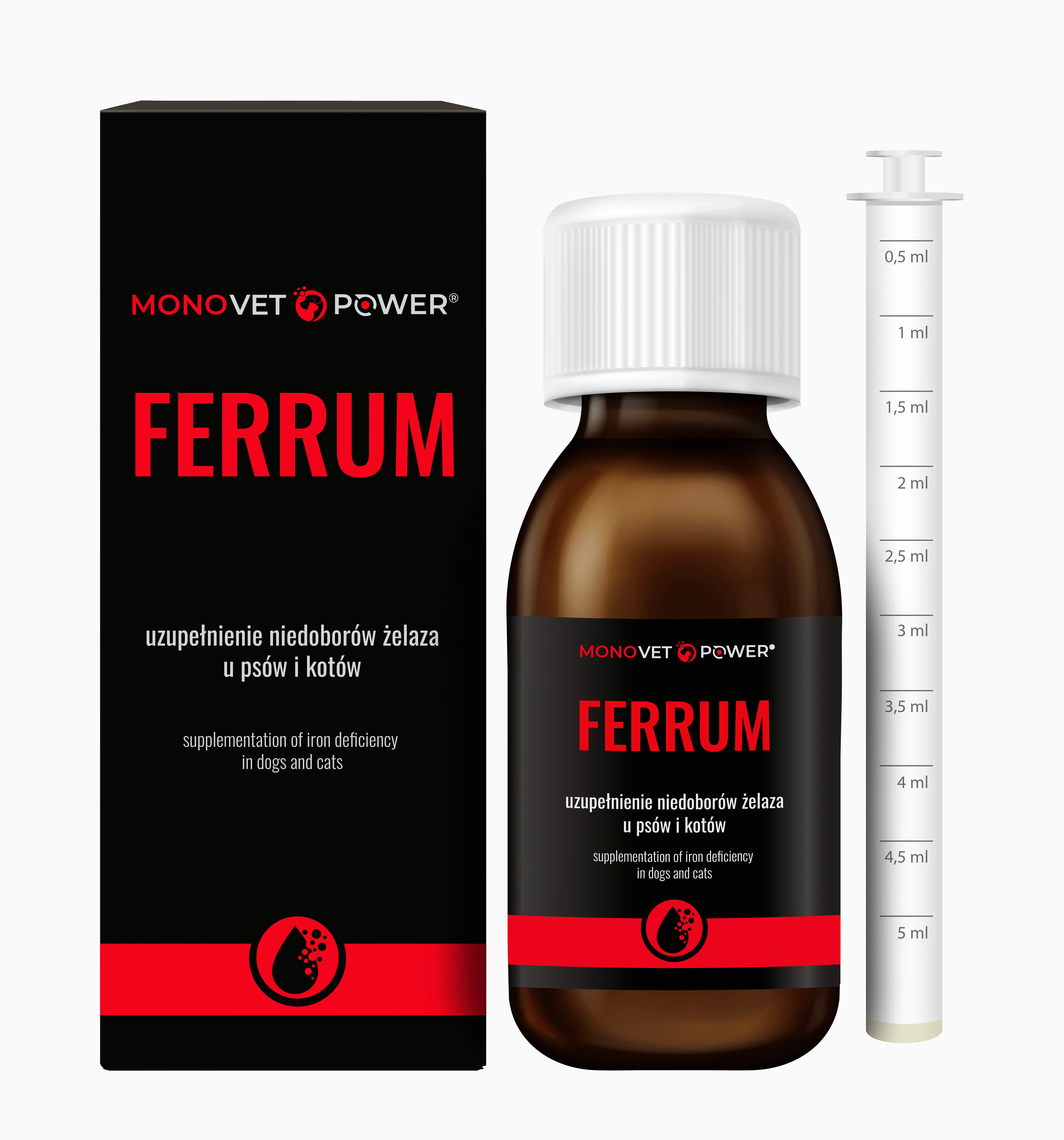 MONOVET POWER FERRUM 90ml - uzupełnienie niedoborów żelaza u psów i kotów
