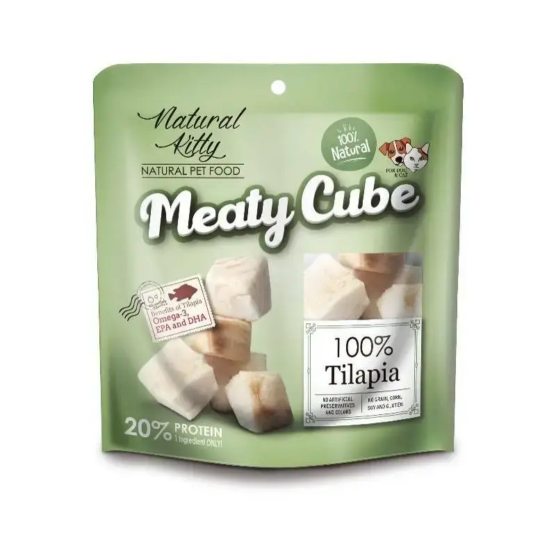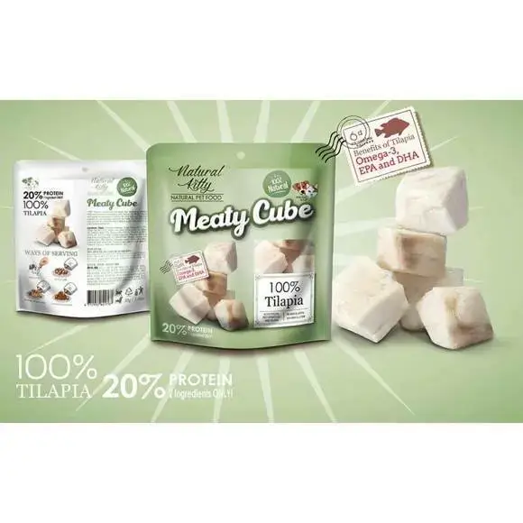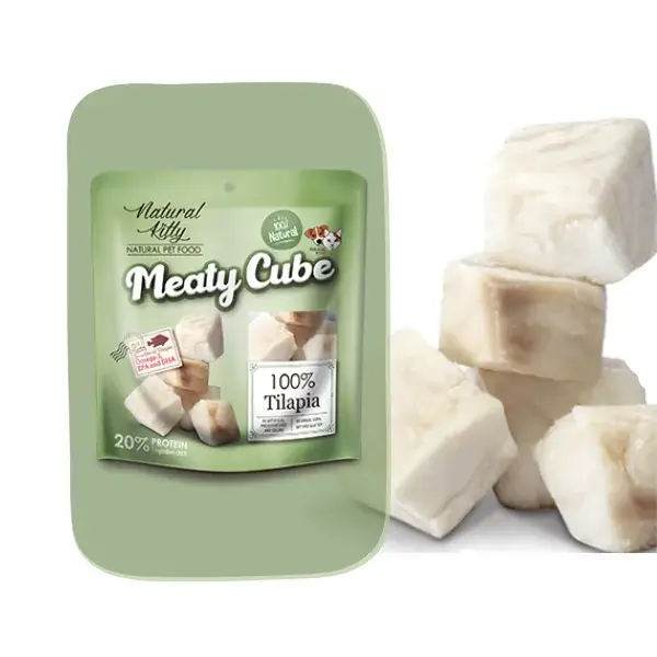 Przysmak zawiera 100% mięsa z tilapii. Składniki są gotowane na parze w celu wzmocnienia smaku i aromatu, przy jednoczesnym zachowaniu ważnych składników odżywczych. Meaty Cube to najlepsza codzienna nagroda dla Twojego pupila. Może być podawana jako smakołyk, lekki posiłek lub jako uzupełnienie głównego posiłku.