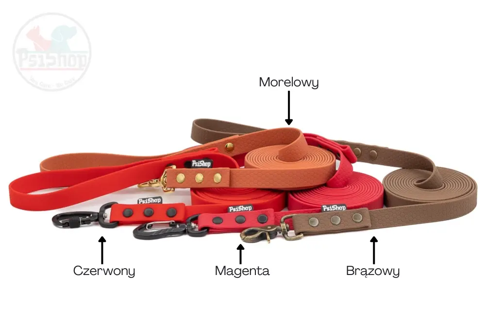 Obroża wykonana jest z PVC, który pokryty jest termoplastycznym poliuretanem (TPU).