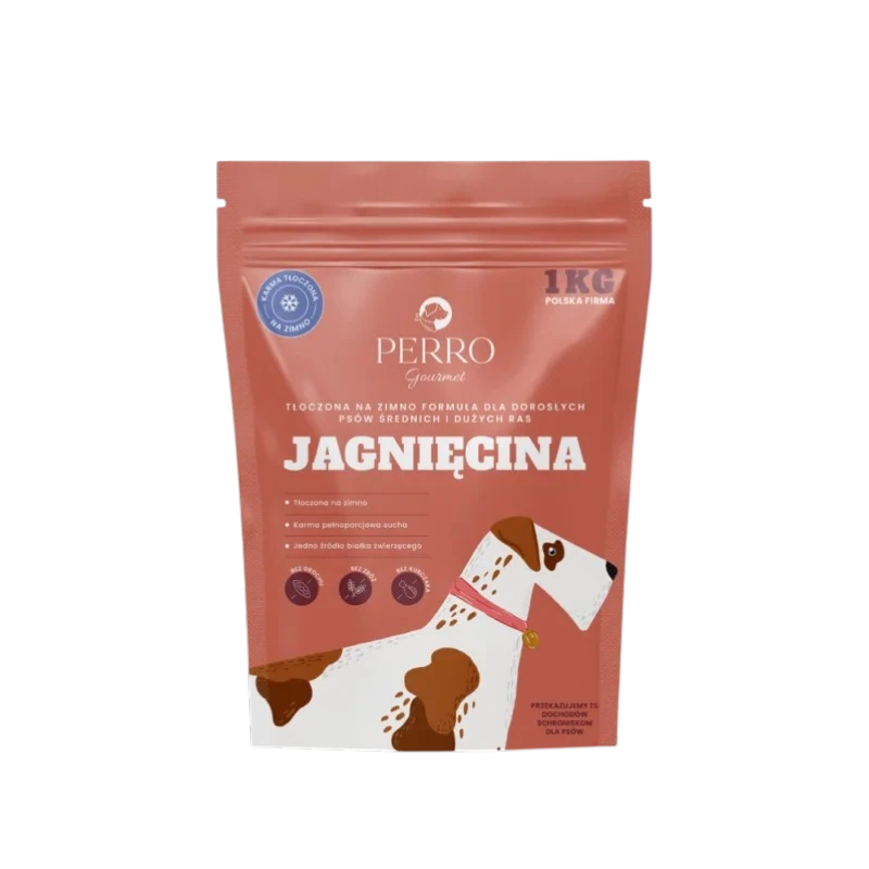Karma tłoczona na zimno PERRO Gourmet Jagnięcina – formuła dla psów dorosłych średnich i dużych ras 1 kg