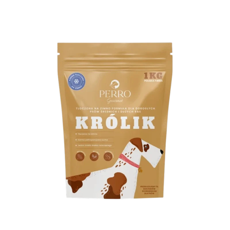 PERRO Gourmet Królik to wysokiej jakości karma tłoczona na zimno dla psa, opracowana z myślą o dorosłych psach średnich i dużych ras. Dzięki delikatnej metodzie produkcji cold-pressed składniki zachowują więcej wartości odżywczych, a sama karma jest wyjątkowo lekkostrawna i dobrze tolerowana nawet przez psy z wrażliwym układem pokarmowym.