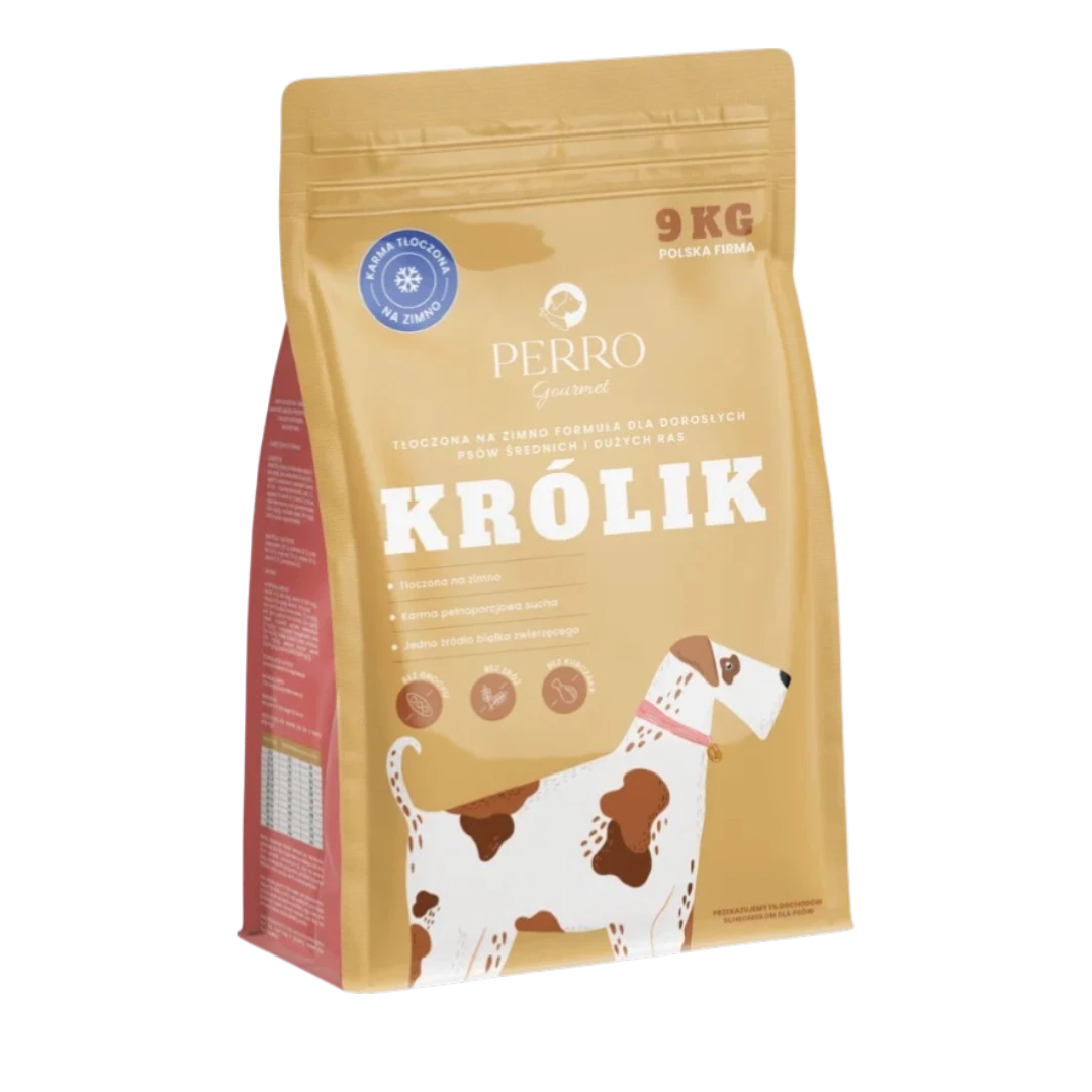 PERRO Gourmet Królik to wysokiej jakości karma tłoczona na zimno dla psa, opracowana z myślą o dorosłych psach średnich i dużych ras. Dzięki delikatnej metodzie produkcji cold-pressed składniki zachowują więcej wartości odżywczych, a sama karma jest wyjątkowo lekkostrawna i dobrze tolerowana nawet przez psy z wrażliwym układem pokarmowym.