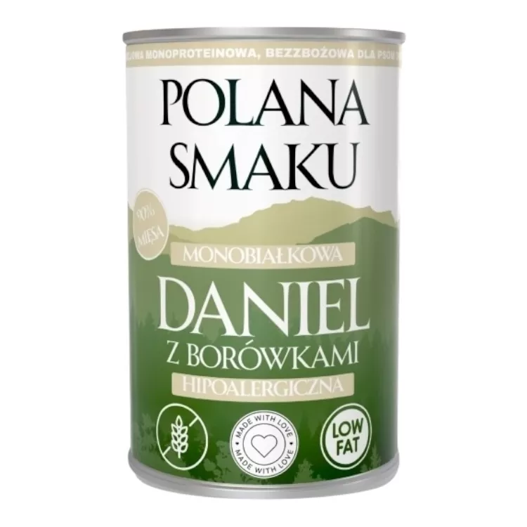 Polana Smaku – Daniel z Borówkami, niskotłuszczowa mokra karma dla psa 400 g