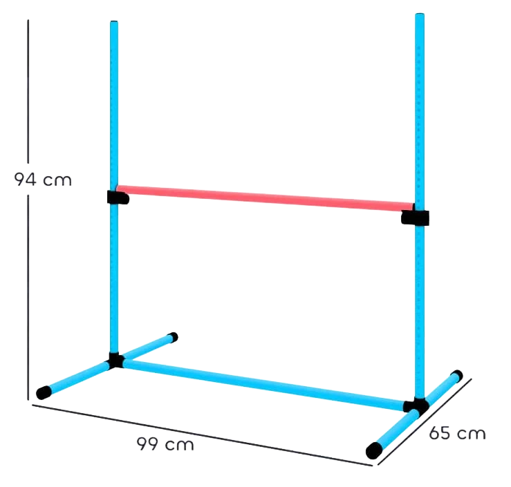 Płynnie regulowana opcja wysokości przeszkody pozwala na dopasowanie jej do indywidualnych potrzeb psa.