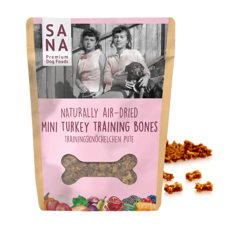 Przysmaki treningowe SANADOG są wykonane z czystego mięsa z indyka i uszlachetnione odrobiną gliceryny z oleju rzepakowego (składnik tłuszczu).