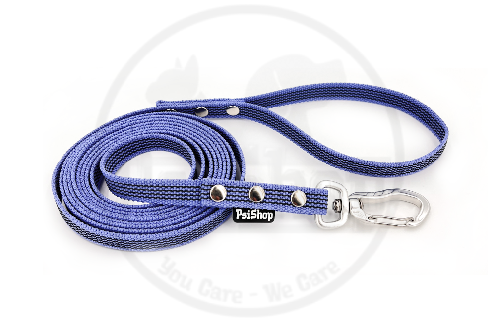 Świetnie prezentująca się smycz w pięknym kolorze, wykonana z taśmy polipropylenowej z wplecionymi elementami gumowymi.