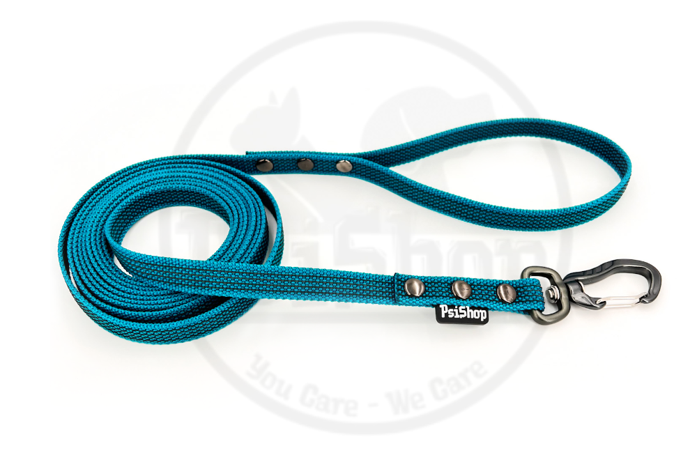 Smycz PsiShop Extra Grip turkusowa (z czarnymi gumowanymi elementami)