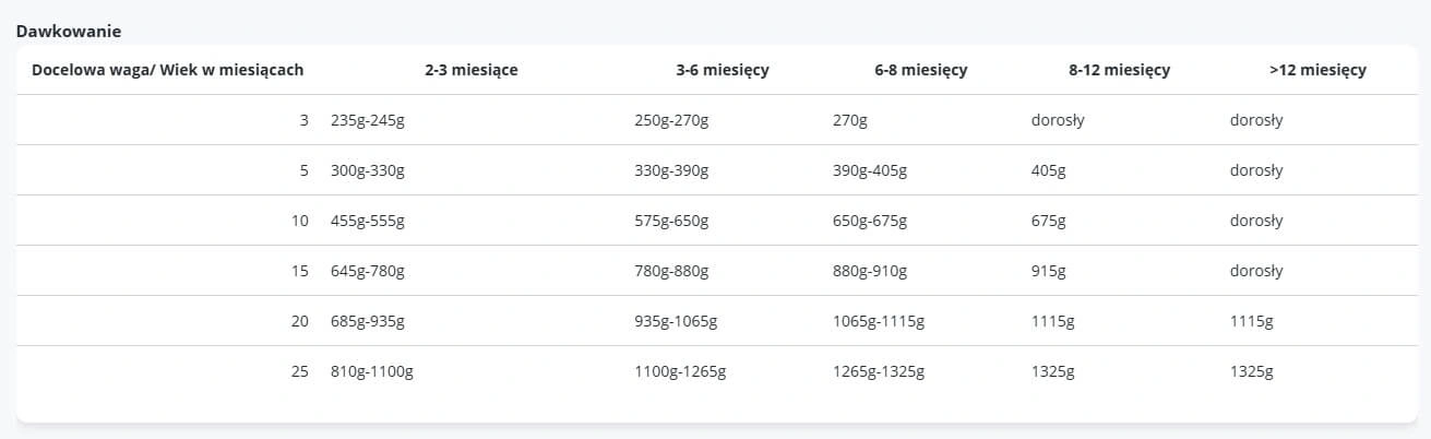 Pełnoporcjowa, lekkostrawna karma mokra stworzona specjalnie dla szczeniąt wszystkich ras. Monobiałkowa formuła na bazie indyka – bez zbóż, kurczaka, soi i laktozy – dostarcza wysokiej jakości białka (92,6% składników pochodzenia zwierzęcego, w tym 72,6% mięsa mięśniowego).
