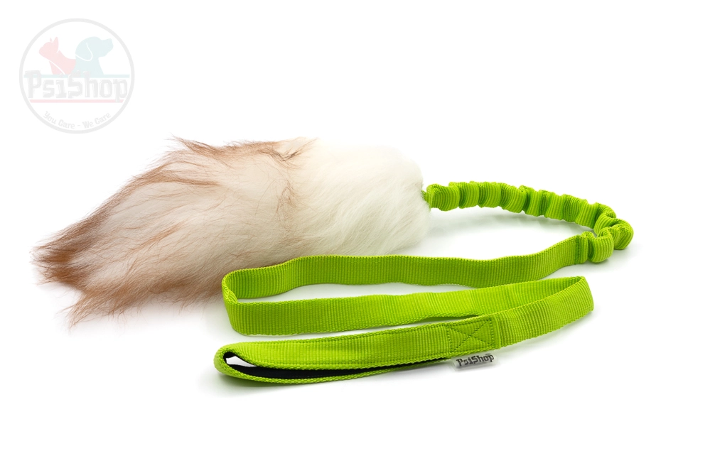 Szarpak PsiShop Long z amortyzatorem futro naturalne Owca zielony