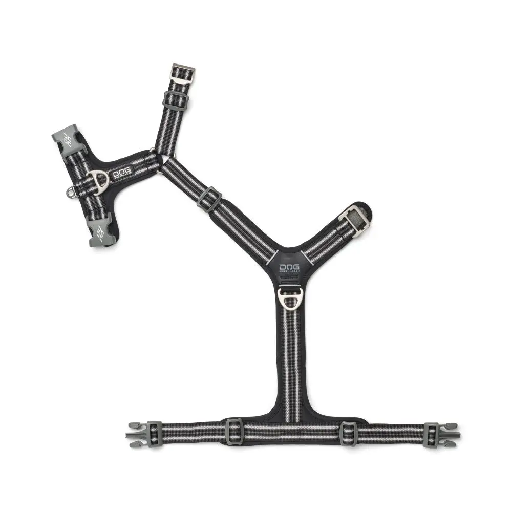Dwa wytrzymałe, aluminiowe miejsca zaczepu smyczy (jedno na psich plecach na codzienne spacery, drugie na psiej klatce piersiowej) zapewniają kontrolę i elastyczność. Szelki dla psa Dog Copenhagen Comfort Walk Air posiadają wiele elementów odblaskowych 3M™, dzięki czemu pies jest lepiej widoczny podczas spacerów po zmroku.