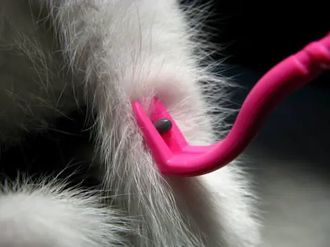 4. Operacja trwa zaledwie kilka sekund i wymaga jedynie użycia środka dezynfekującego po wyjęciu kleszcza.