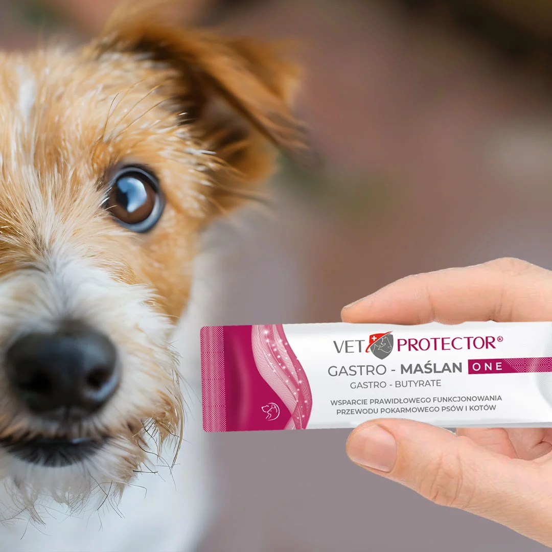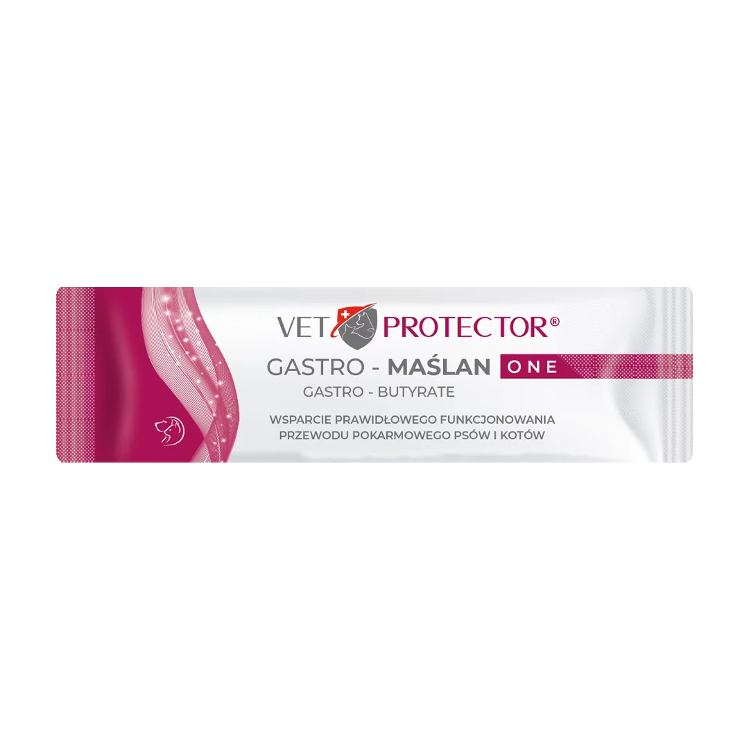 VET PROTECTOR® GASTRO – MAŚLAN ONE to nowoczesny preparat wspierający funkcjonowanie przewodu pokarmowego u psów i kotów. Zawiera mikrootoczkowany maślan sodu, który skutecznie dostarcza kwas masłowy bezpośrednio do jelit – tam, gdzie jest najbardziej potrzebny.
