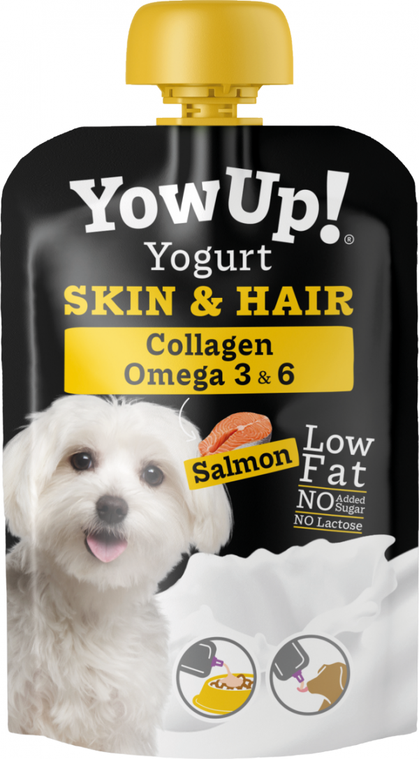 YOW UP! Skóra & Sierść Jogurt naturalny z łososiem bez laktozy, cukru i tłuszczu dla psów 115g