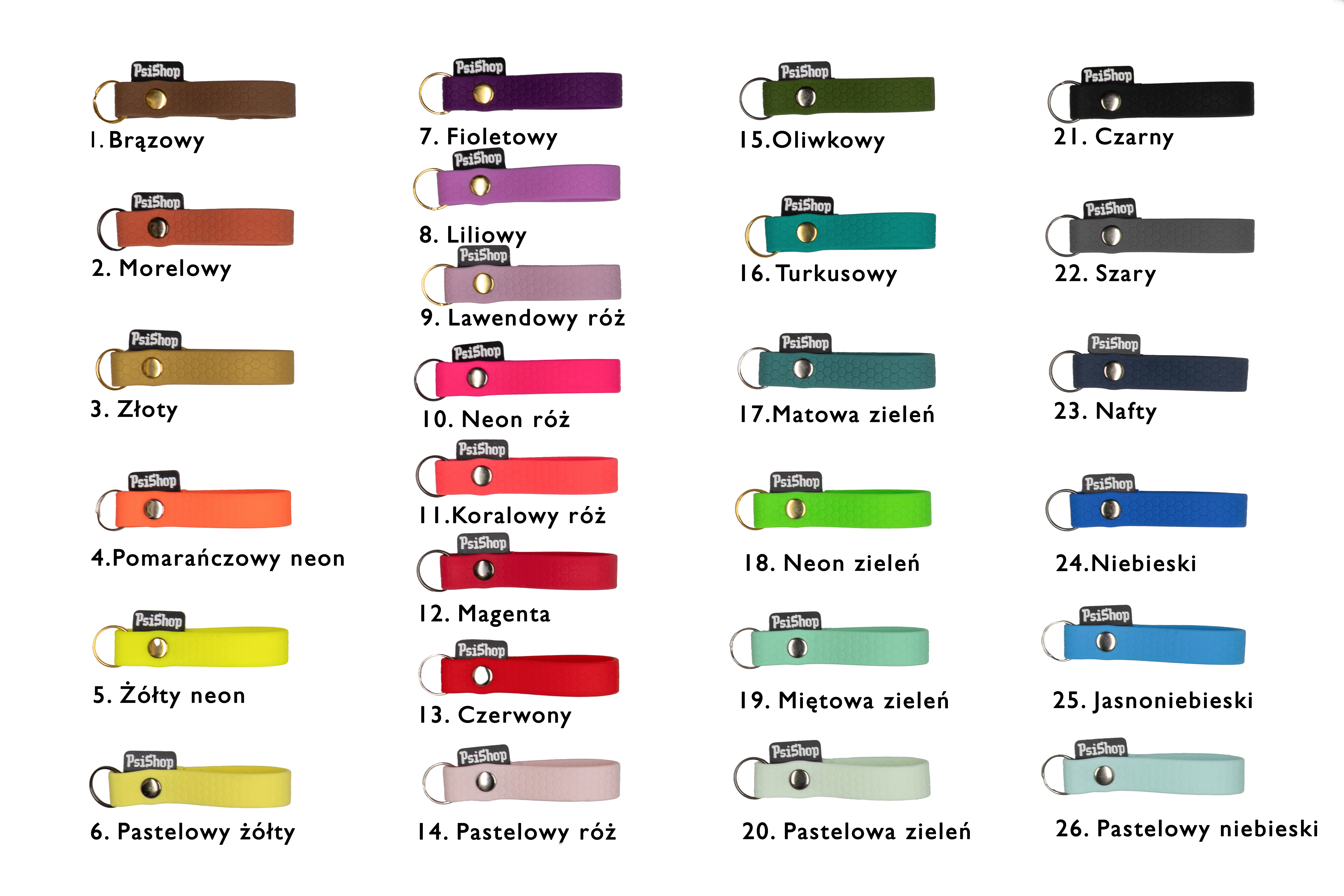 Wyboru rodzaju i koloru karabinka możesz dokonać wybierając jego numer w polu znajdującym się pod polami wyboru długości i szerokości smyczy !!! Zwróć uwagę na możliwość zamontowania danego karabinka do określonej szerokości taśmy !